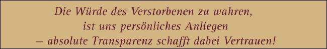 Wir sind der Meinung, dass eine würdevolle, angemessene Bestattung zu einem tragbaren Preis möglich sein muss.